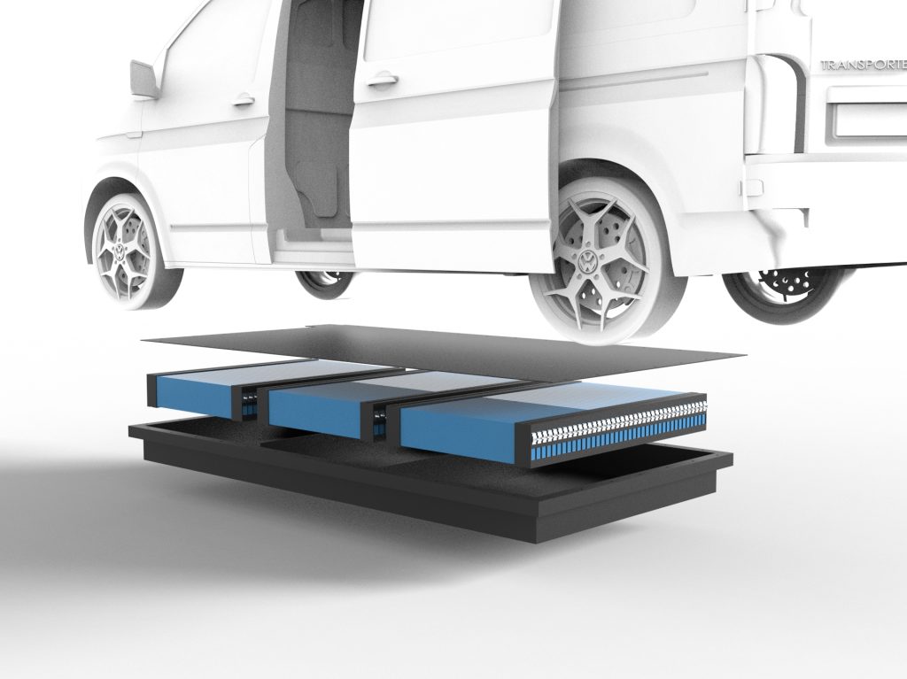 _Naredne slike prikazuju razvoj elektro kitova za vozila, od adaptera prijenosa do kućišta za baterije i popratne elemente potrebne za funkcionalnost kitova. Vizuali prikazuju model kućišta za baterije te elektro motor s adapterom prijenosa i pločom getribe izrađenih prema našim tehničkim nacrtima. Proces razvoja adaptera i ploče za konverziju vozila na elektriku obuhvaća više složenih procesa koje smo odradili da bismo dobili gotove dijelove poput 3D skeniranja, fizičkih izmjera, izrade tehničkih nacrta, pripreme za CNC obradu i izradu dijelova te optimizacija.